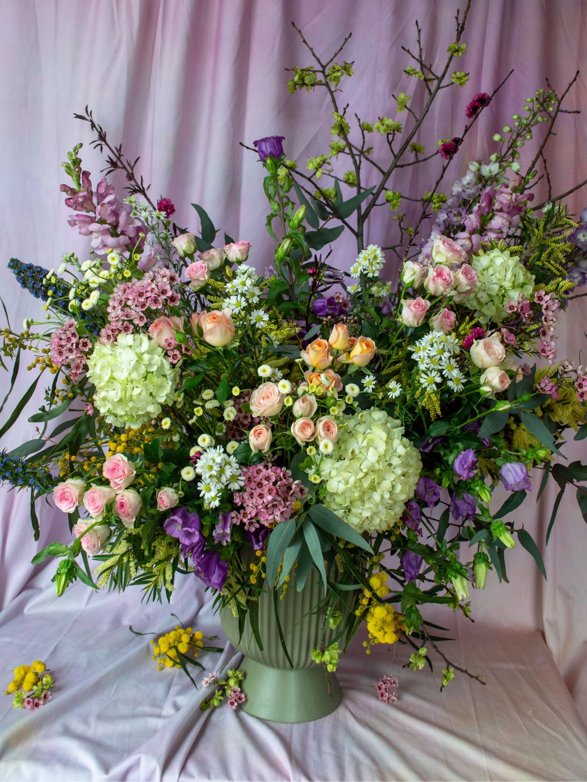 Pictured is a Deluxe arrangement shown in sage green vase. There is not a vase included in the arrangement, but this can be purchased separately.