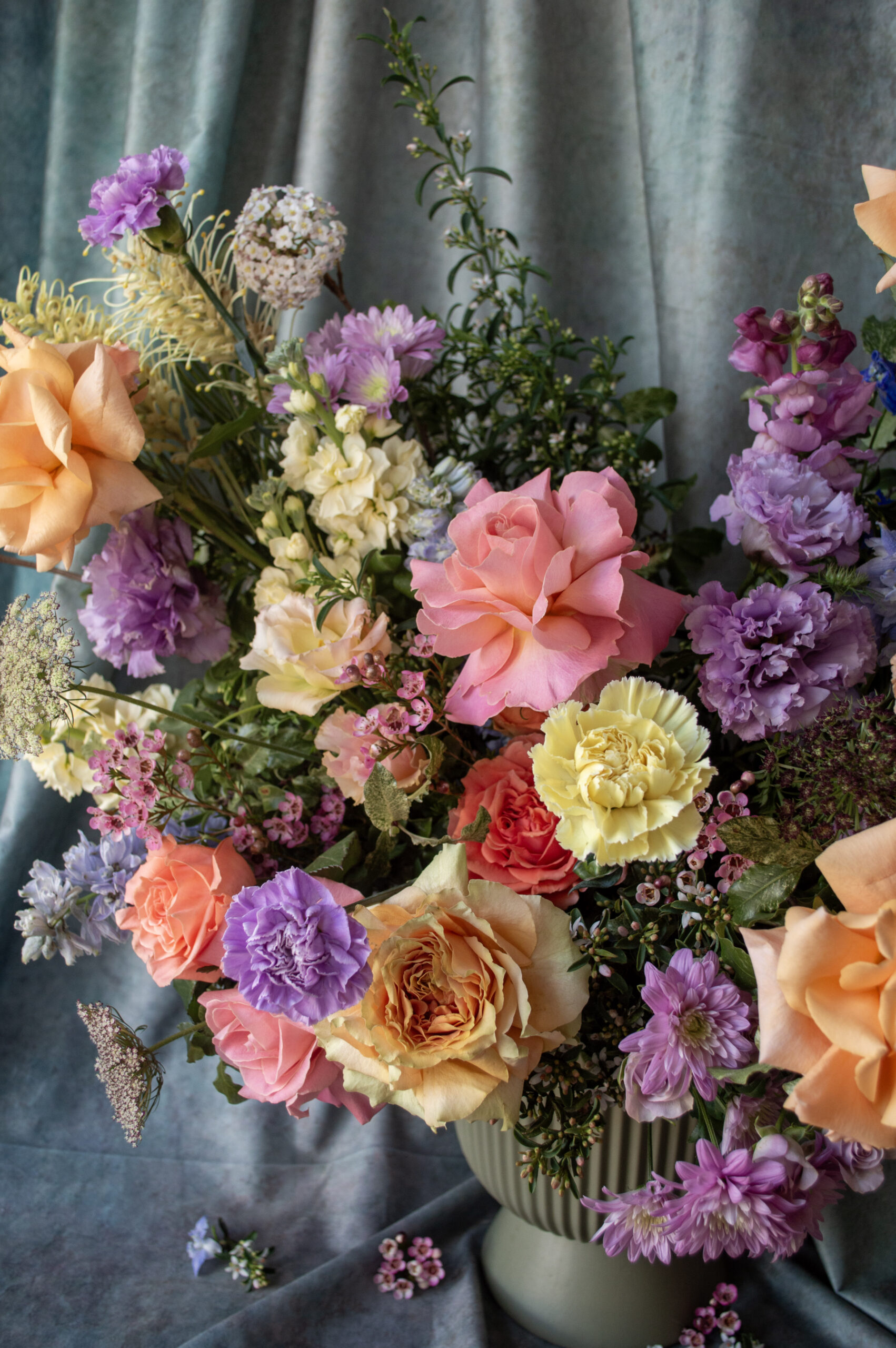 Vase life may vary from flower to flower as no flower lasts the same time, they have a life of their own. The pictures displayed are an indication of the style and colour palette only, your bouquet will look slightly different as we prioritise quality seasonal blooms. If you continue to proceed with this order you are agreeing to trust us to work with mother nature and sculpt a beautiful, unique arrangement for you.