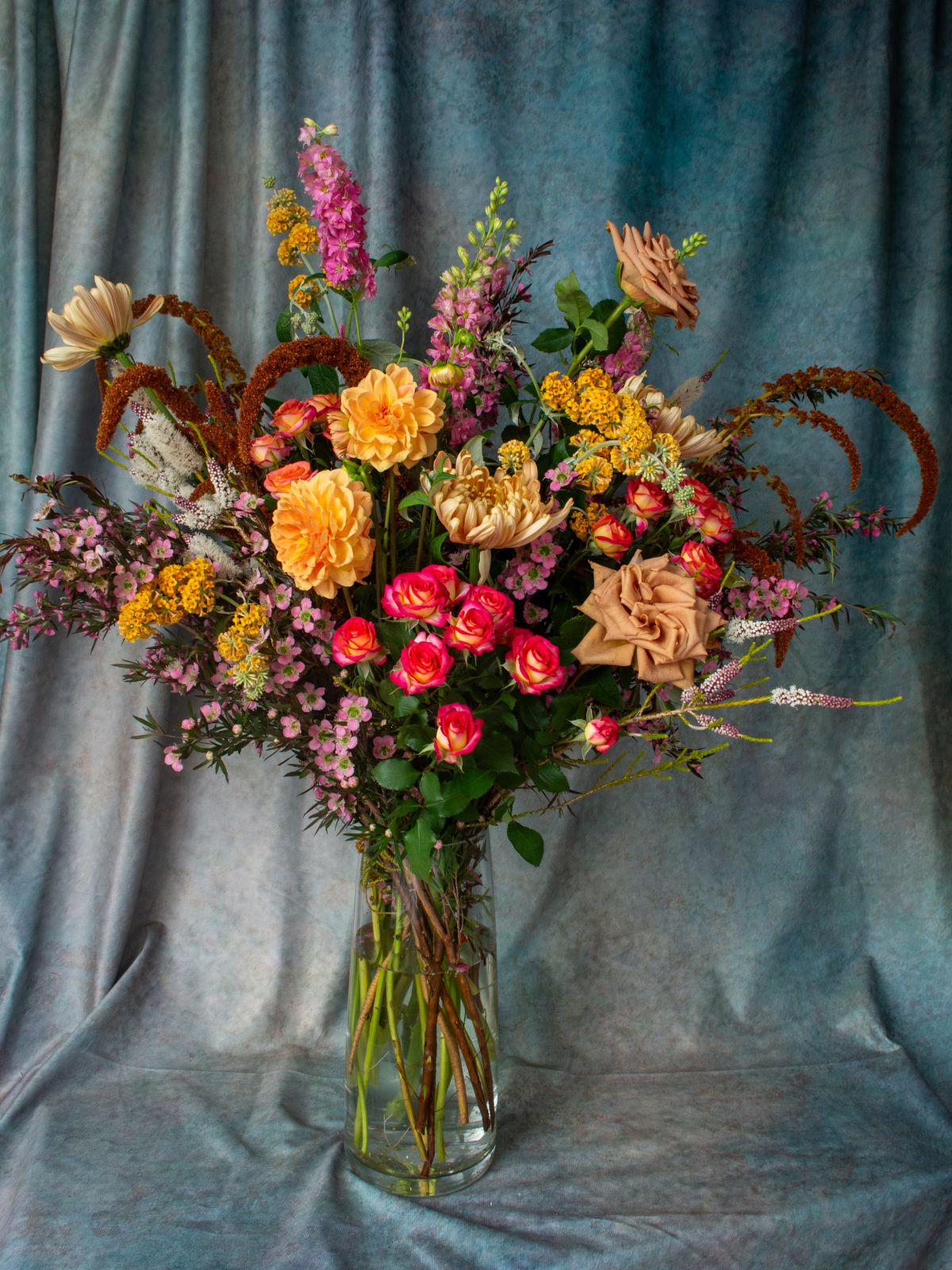 An artistic statement piece that offers something a little quirky and different. Each arrangement is uniquely designed by our talented florists and no two will look the same.